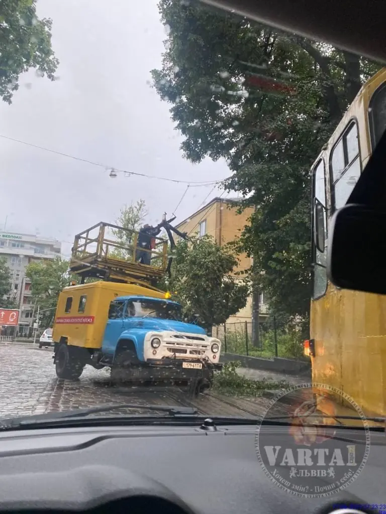 Пресслужба Львівської міської ради повідомляє, що в наслідок дощів було підтоплено дві вулиці - Ряшівську та Городоцьку, а сильні пориви вітру повалили близько 27 дерев, деякі з них попадали на автомобілі.