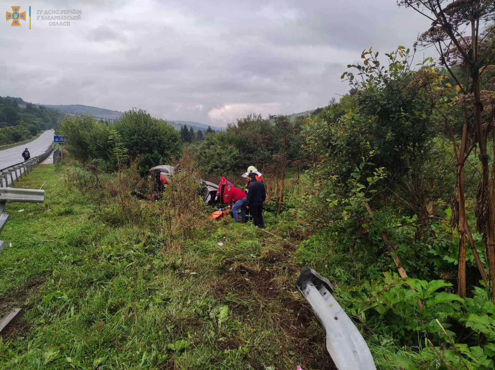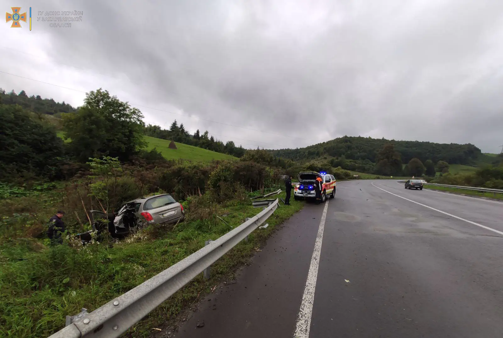 Як повідомляє Управління ДСНС України у Закарпатській області, за попередніми даними, водійка автомобіля Peugeot 308 на мокрій ділянці шляху не впоралась із керуванням, в результаті чого машина з’їхала на узбіччя та перекинулась на дах.