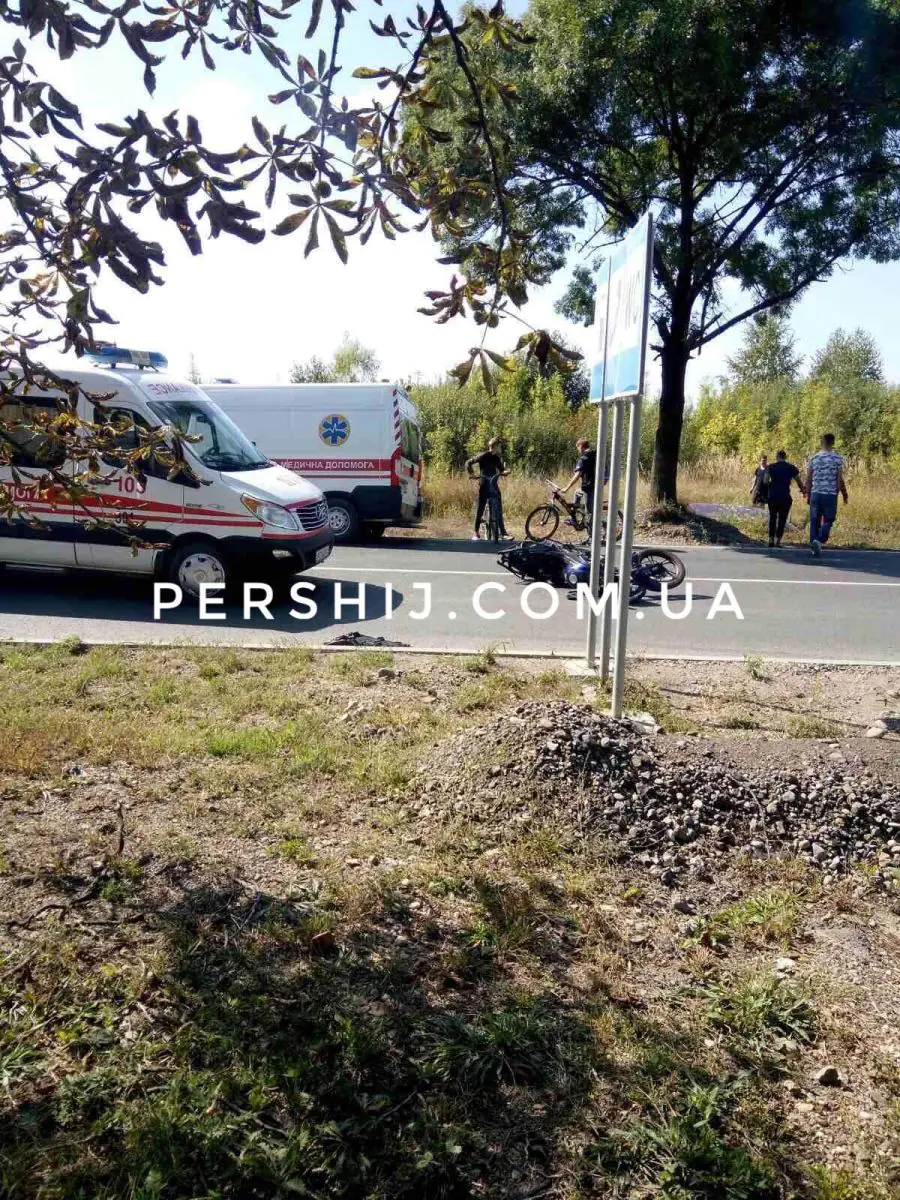 Відомо, що зіштовхнулися легковик та мотоцикл, останній від удару відкинуло на зустрічну смугу, тоді як автівка опинилася у кюветі, де протікає місцевий потічок.