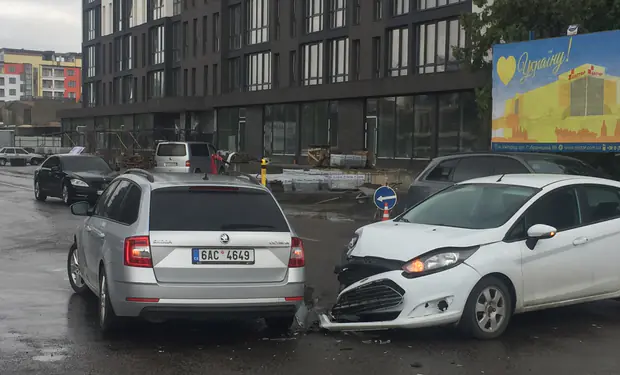 Автопригода тарпилася сьогодні, 24 серпня, зранку на перехресті Слав'янської набережної та вулиці Баб'яка за участі легкових авто Skoda Octavia та Ford.