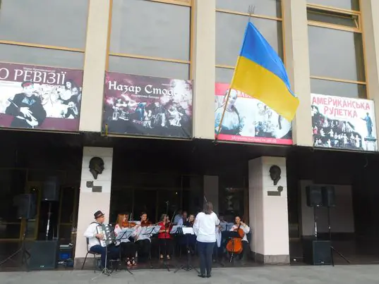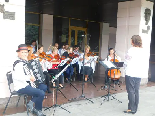 На площі Богдана Хмельницького вранці зіграв духовий оркестр Закарпатської обласної філармонії, а о пів на дванадцяту народні мелодії зазвучали біля Закарпатського обласного театру імені братів Шерегіїв.