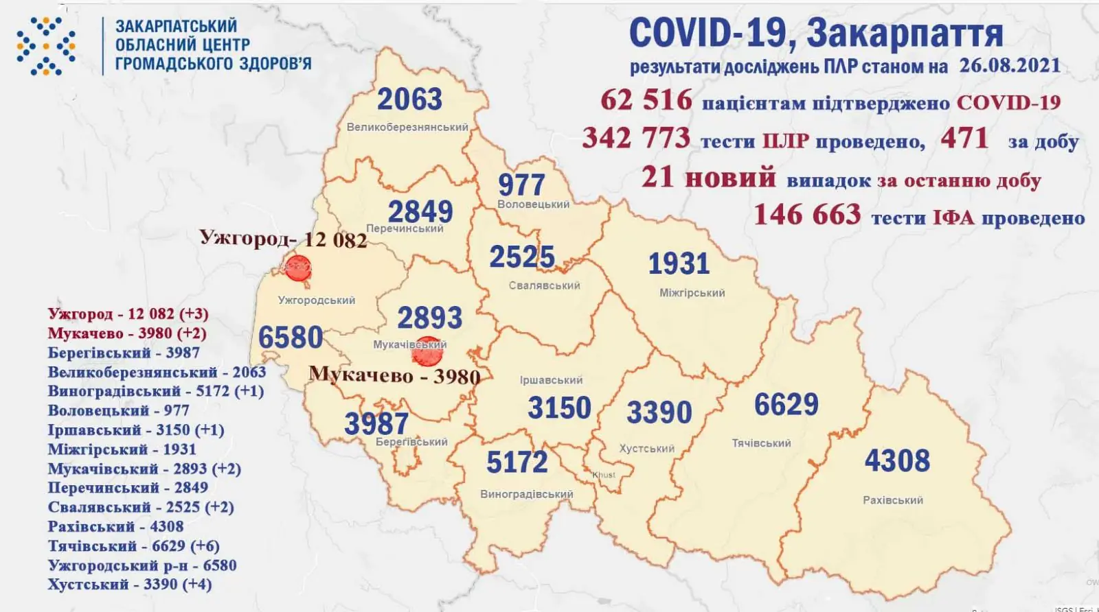 Як повідомив сьогодні, 26 серпня, Закарпатський обласний центр громадського здоров'я, упродовж минулої доби 25 серпня