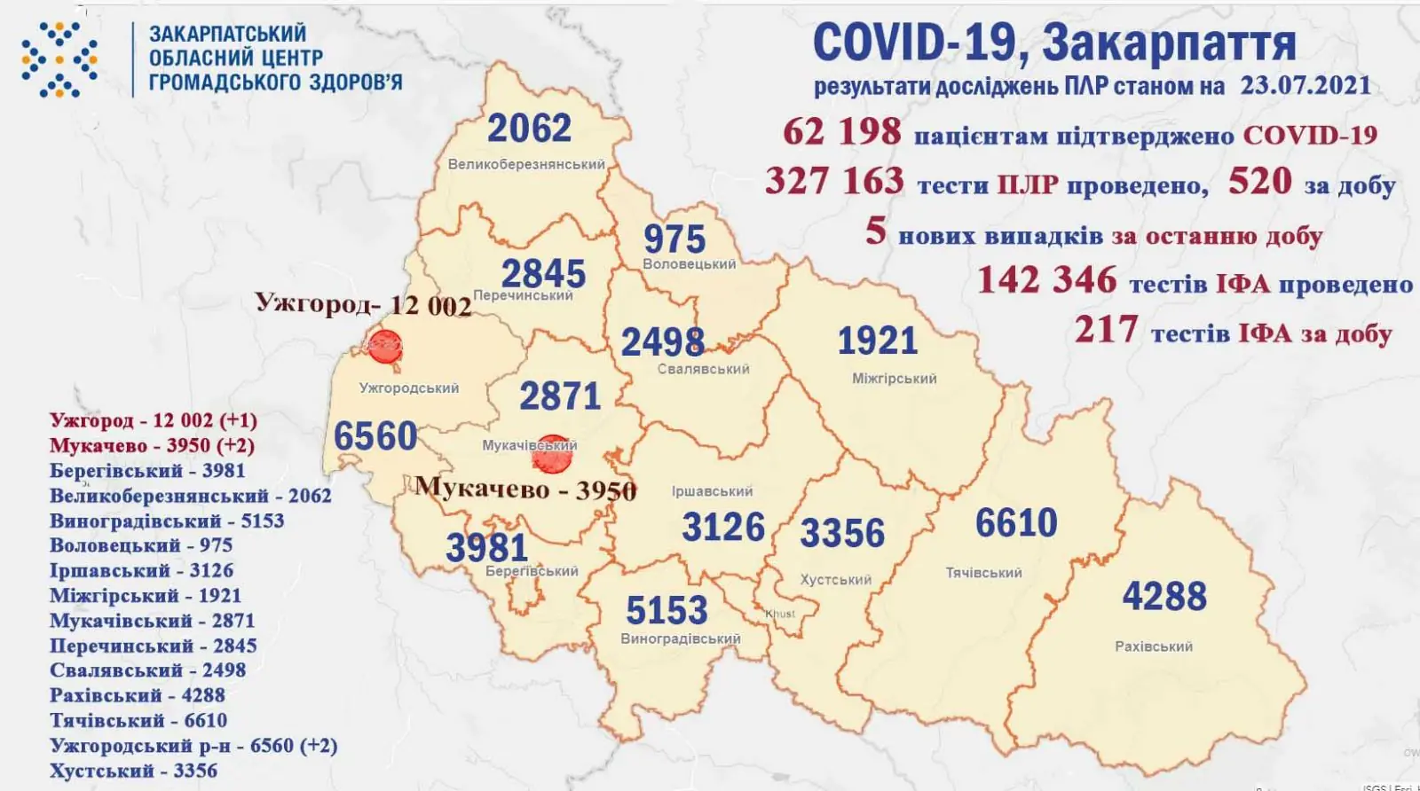 Як повідомив сьогодні, 23 липня, Закарпатський обласний центр громадського здоров'я, упродовж минулої доби 22 липня