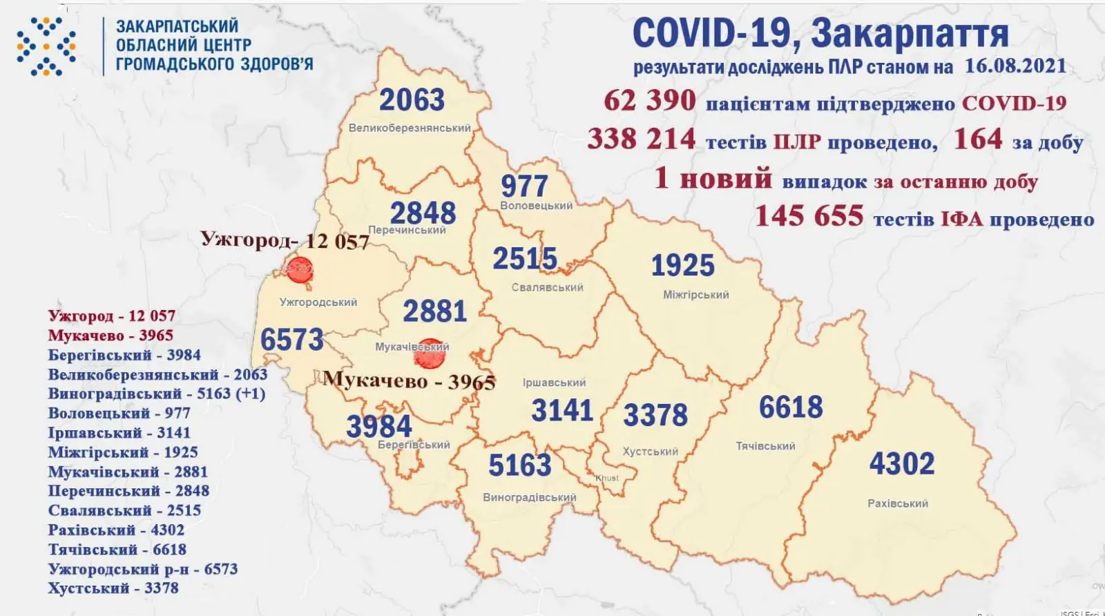 Як повідомив сьогодні, 16 серпня, Закарпатський обласний центр громадського здоров'я, упродовж минулої доби 15 серпня