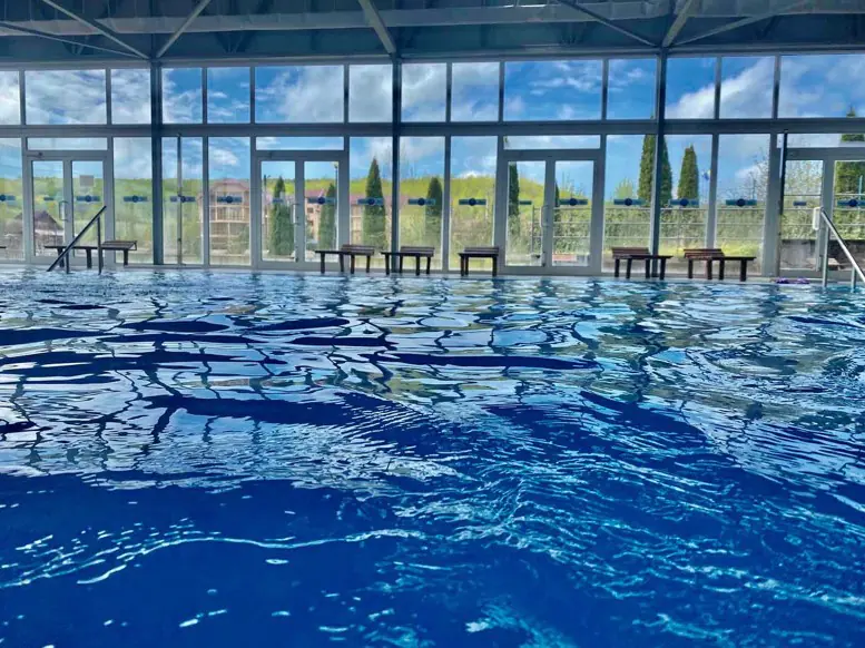 Працює термальний басейн розміром 4х12м, критий басейн з підігрівом та слабо мінералізованою очищеною водою розміром 25х12., а для дітей – маленький басейн розміром 5.6х5.6м і глибиною 0.75м.
