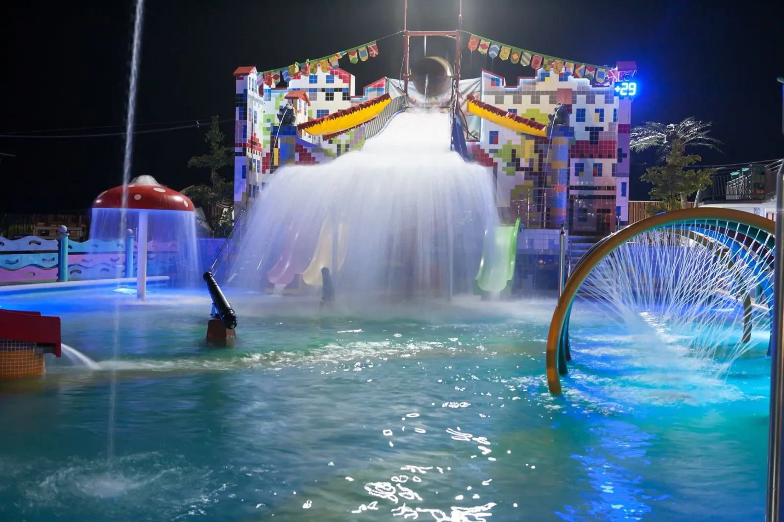 Уночі з 22:00 до 23:00 працює дитячий басейн з атракціонами – водоспад, гірки, водяні пушки та фонтани, а також ігрова зона з атракціонами та лабіринтами.