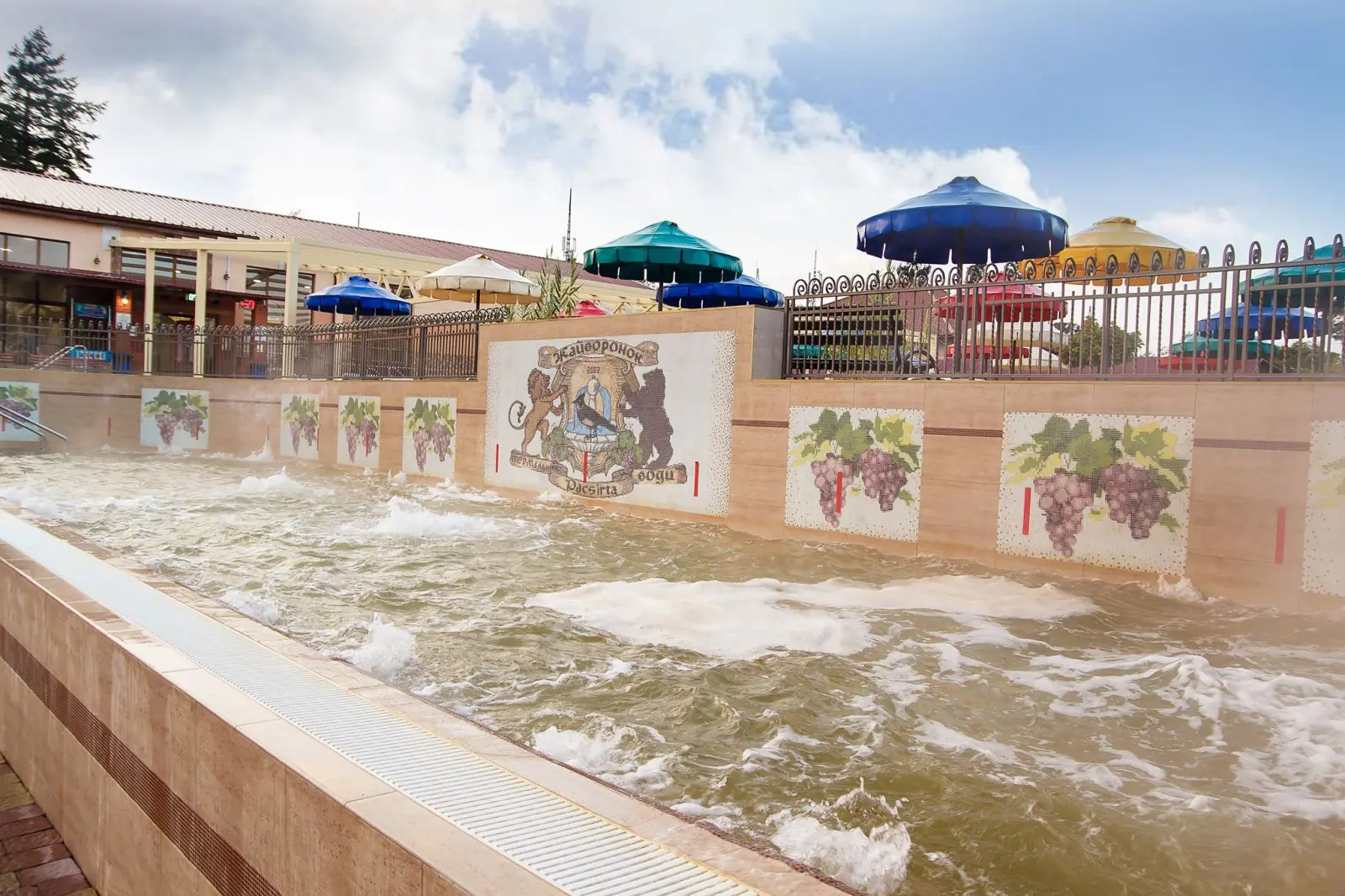 На території сімейно-розважального комплексу загальною площею 7000 м2 функціонують три басейни (дорослий, підлітковий і дитячий), спортивні та дитячі майданчики і надувні гірки.