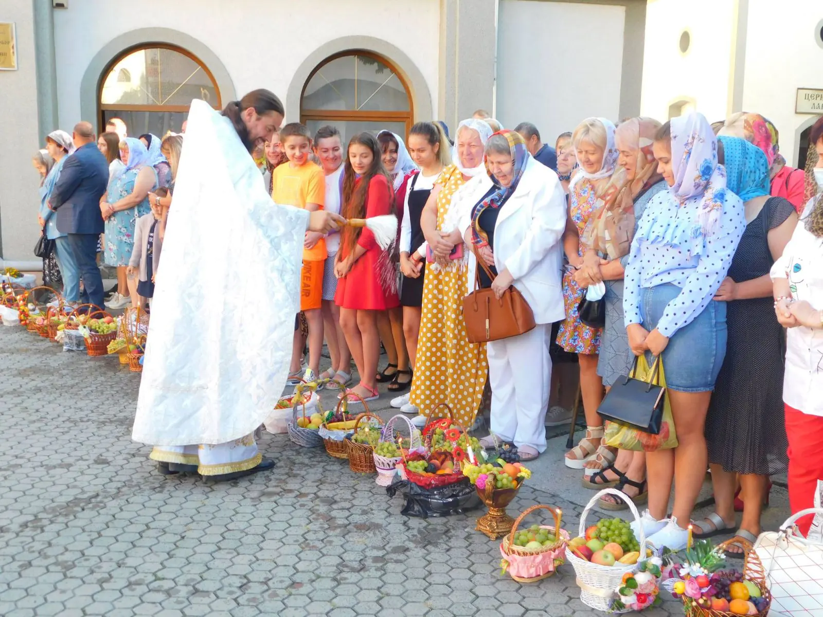 «Літні пасочки»: у Мукачівському соборі Почаївської ікони Пресвятої Богородиці на Преображення освятили перші плоди (ФОТО)