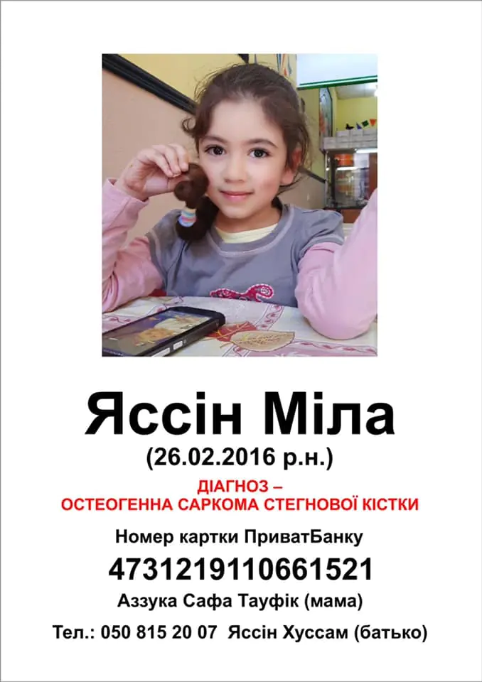 Біда спіткала родину маленької Міли Яссін, яка попри свій зовсім юний вік бореться з підступною недугою - онкологією.