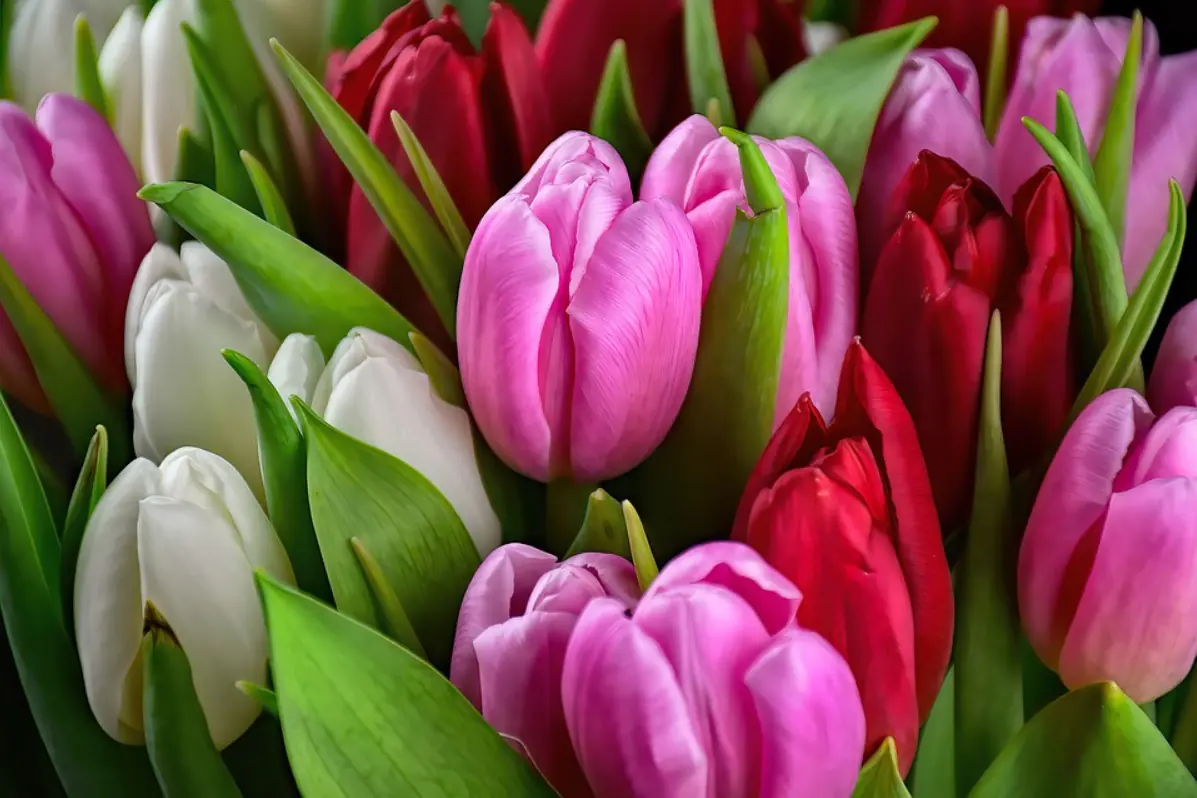 Тюльпани – зізнання у коханні, новий початок. Червоні тюльпани дарують, сподіваючись на взаємність. Рожеві – натяк на ніжні почуття, про які ще не наважуються сказати. Білі троянди означають чисту і безтурботну любов. Жовті завдяки шлягеру Наташі Корольової стали вісниками розлуки, проте інше їхнє значення – побажання багатства і процвітання, що робить їх прийнятними у букетах для колег.