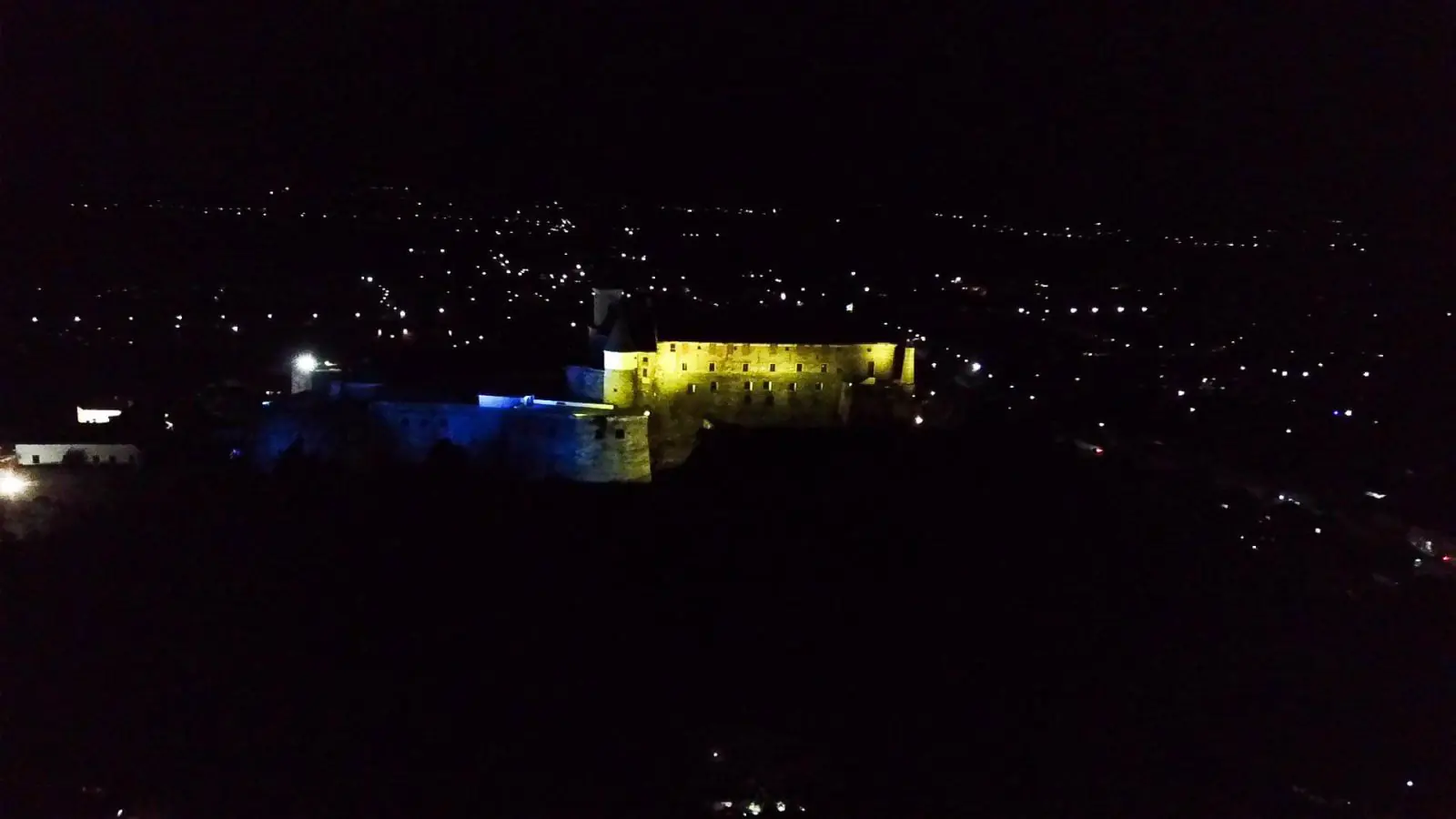 До Дня Прапора України у Мукачеві замок "Паланок" підсвітили жовто-блакитними кольорами.
