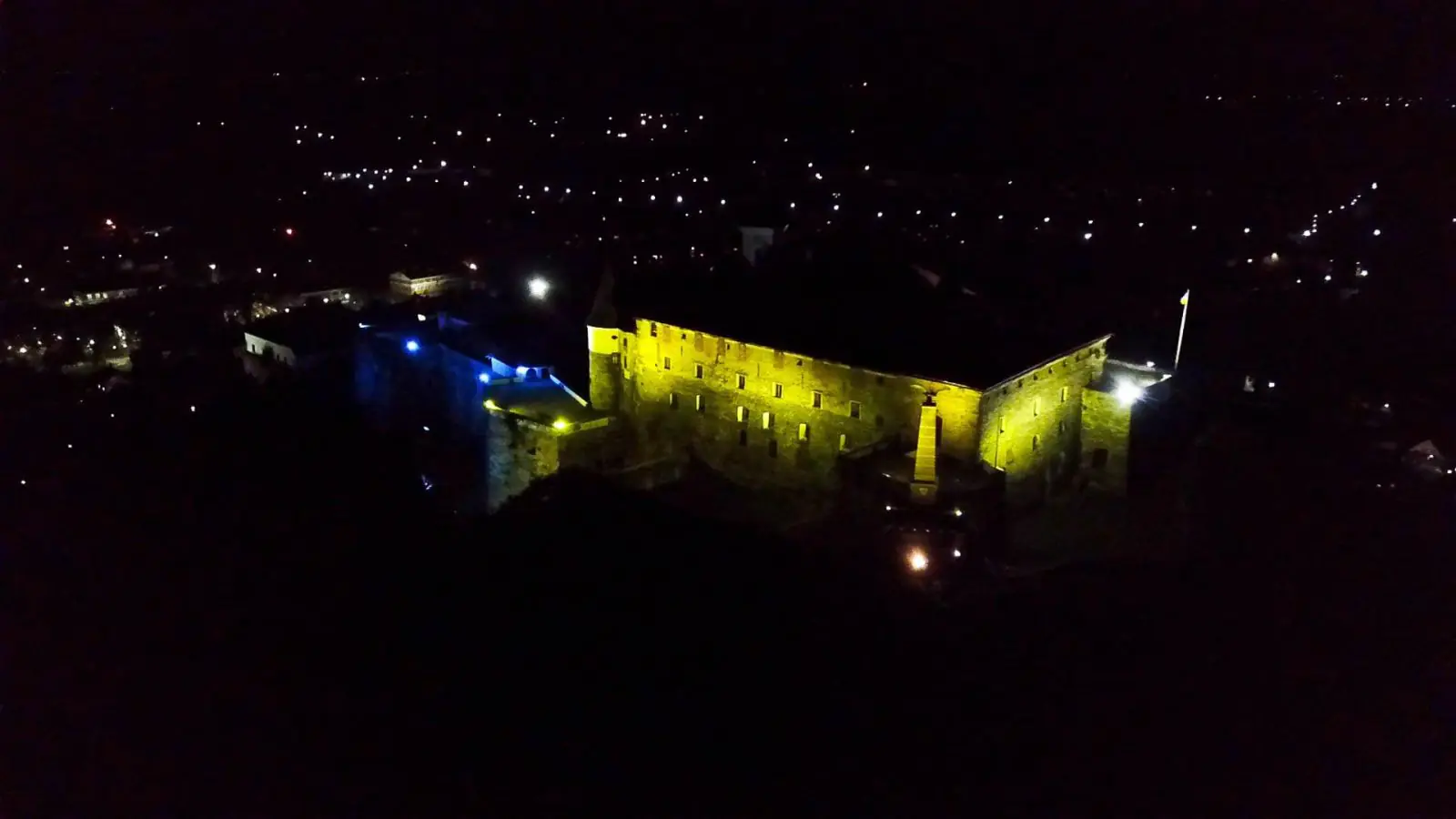 Мукачівський замок "Паланок" засяяв кольорами Державного Прапора України (ФОТО, ВІДЕО)