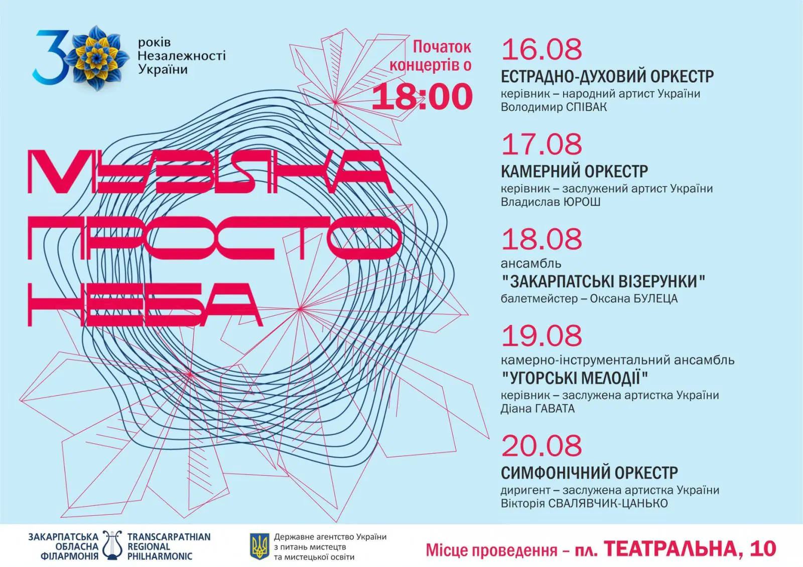 Музика просто неба: з нагоди 30-річчя Незалежності України в Ужгороді виступатимуть творчі колективи
