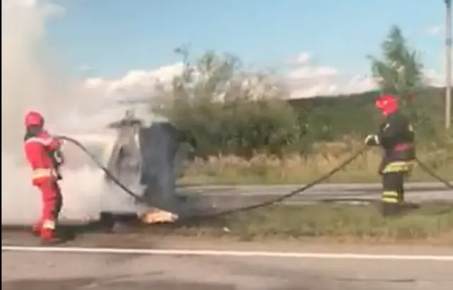 На місце прибула швидка: на трасі між Мукачевом та Ужгородом перекинулася та спалахнула автівка (ФОТО, ВІДЕО)