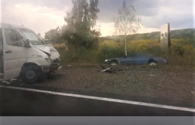 На Мукачівщині, в наслідок зіткнення з мікроавтобусом легковик опинився у кюветі (ФОТО)
