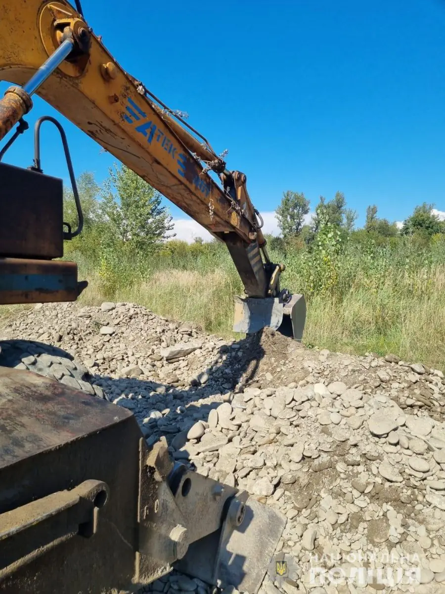 Вантажну техніку працівники поліції вилучили та відібрали зразки піщано-гравійної суміші з місця, де імовірно проводився видобуток.