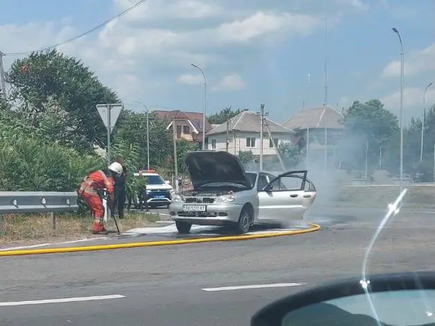 Сьогодні, 27 липня, близько 14 годині у селі Глибоке поблизу Ужгорода серед дороги зайнявся легковик.