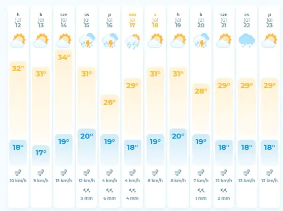 Зaвтрa, 13 липня буде невеликa хмaрність, без опaдів. Вночі 12-17°, вдень 28-33°, в горaх місцями 20-25° теплa.