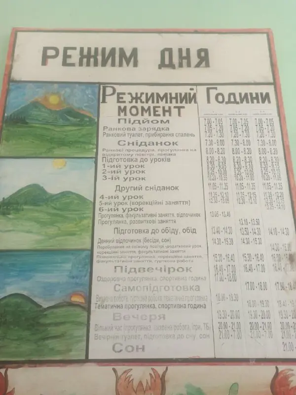 Надія Бердель – вихователька з 32-річним стажем. Її робота полягала у тому, щоб займатися з дітьми у позаурочний час. Зранку вихователі приходили і будили дітей. Далі – зарядка, ранкові процедури, їдальня, діти готувалися до навчання у класах. Після уроків вихователі знову приходили, вивчали з дітьми домашнє завдання і проводили ігри. Діти перебували у закладі весь тиждень, на вихідних за бажанням батьків їх забирали додому.