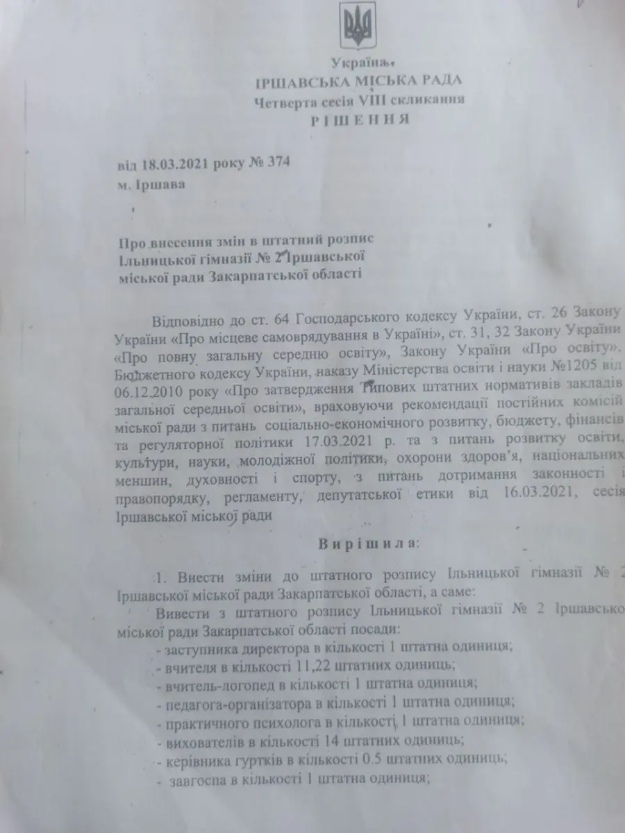Ільницька гімназія №2 Іршавської міської ради, де навчаються діти з ментальною інвалідністю, опинилася на межі закриття. Педагогічних працівників, які працювали з особливими дітьми, міськрада прибрала зі штату. Опікуватися освітою і розвитком дітей тепер фактично нікому – крім рідних, котрі не мають для цього ні відповідних компетентностей, ні часу.