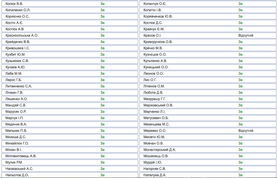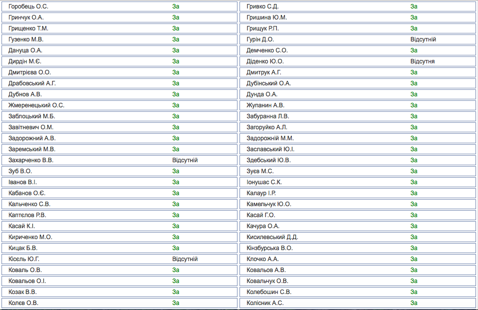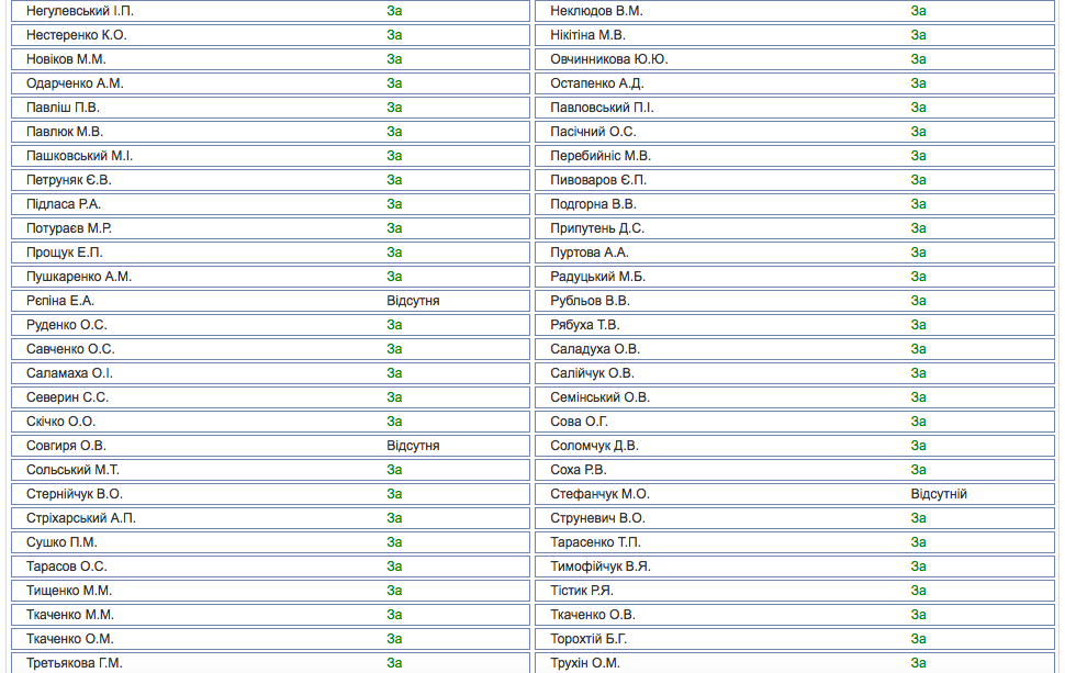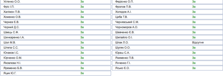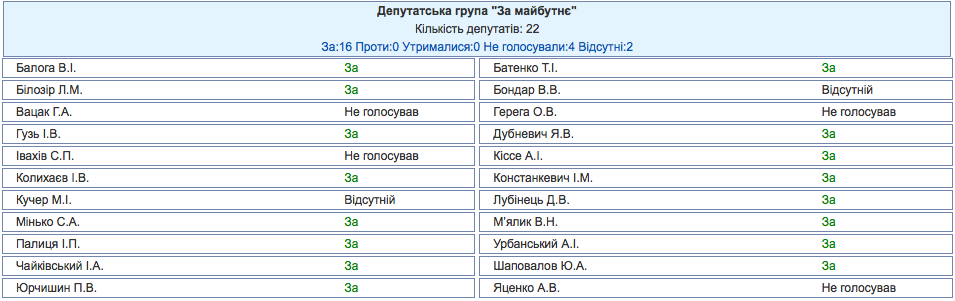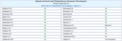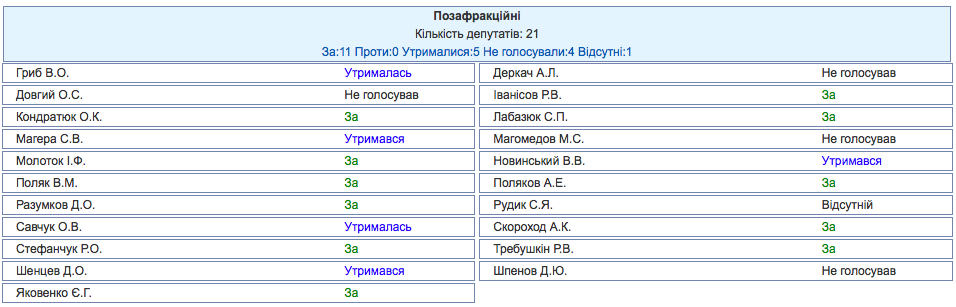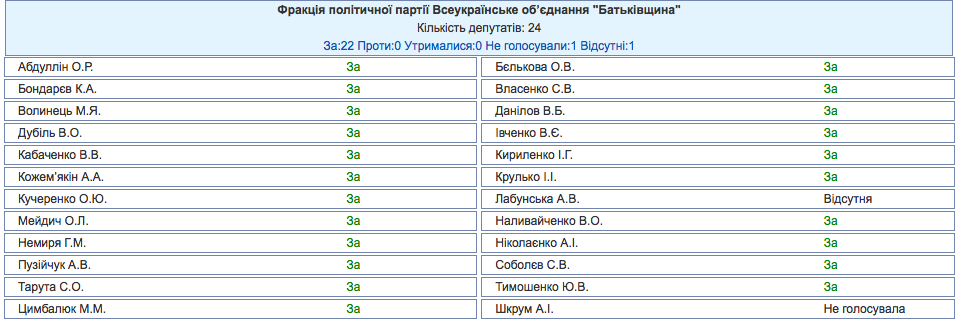 Підтримала документ і "Батьківщина". Була відсутня Лабунська. Не голосувала Шкрум.