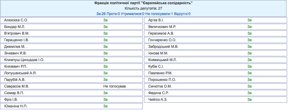 Фракція "Європейська солідарність" всім склад "за", не голосувала Соврасова.