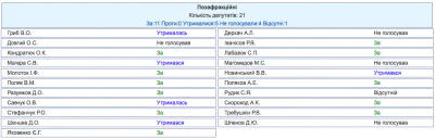 Розділилися думки позафракційних. Частина - "за". Частина - не голосували або утрималися. "Проти" не виступив ніхто.