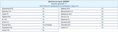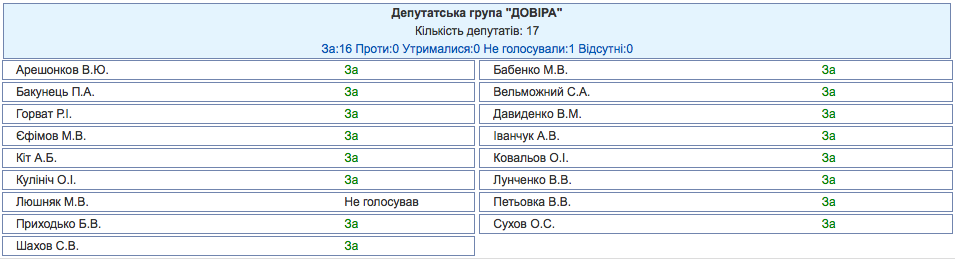 Депутатська група "Довіра" повністю "за", за виключенням не голосувала Люшняка.