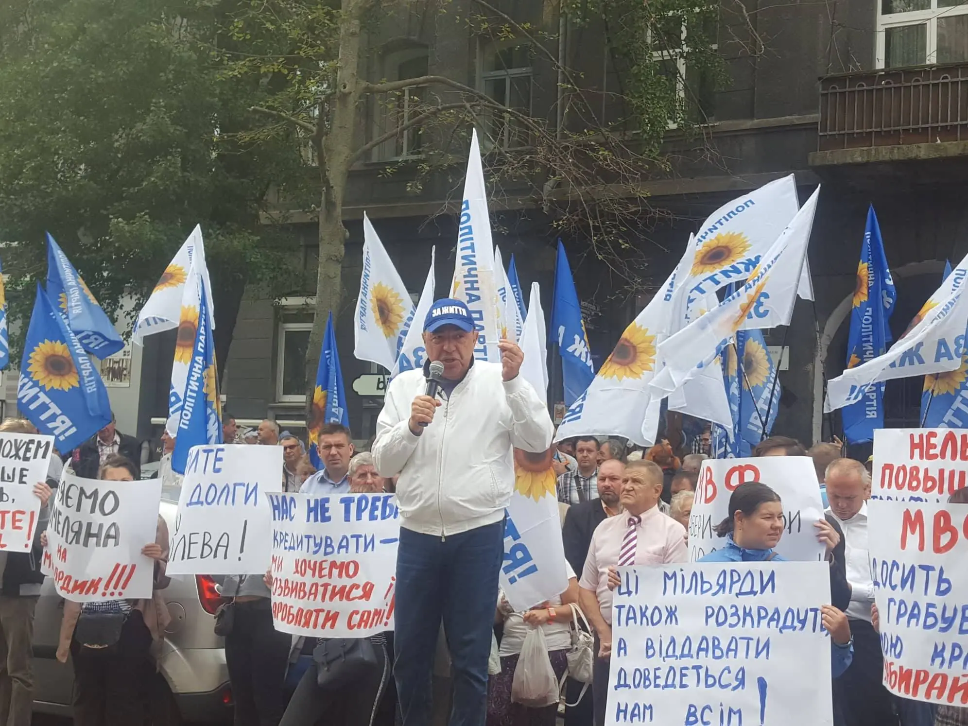 "Чинна українська влада робить все, щоб у громадян України не було гідних умов життя. Сьогодні в Україну приїхала місія МВФ. Це пірати, які приїхали захопити нашу країну, приїхали, щоб висмоктати з нас усі соки!", - заявив на мітингу народний депутат Україна, лідер політичної партії "За життя" Вадим Рабінович.