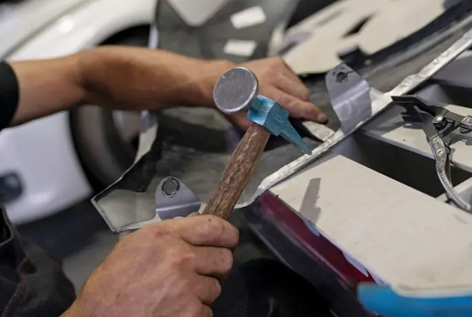 Якщо на кузові є складка, починають з виправлення цієї деформації, а потім переходять до інших пошкоджень. Це трудомісткий процес, який, хоча й виглядає не дуже високотехнічним, вимагає точності і кваліфікації, адже помилка може погіршити ситуацію – аж до того, що деталь доведеться викинути.