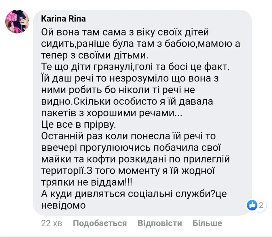 В коментарях люди зазначають, що неодноразово віддавали жінці пакунки з одягом, однак цей одяг горе-матір на дітей не одягала.