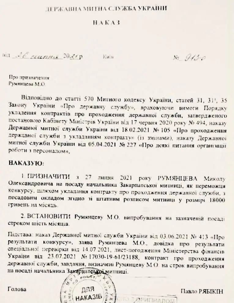Стало відомо, хто став новим очільником Закарпатської митниці (ДОКУМЕНТ)