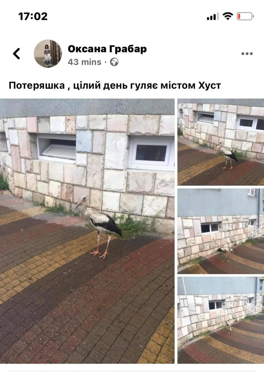 Птаха помітили у місті Хуст, про це повідомила Оксана Грабар у соціальній мережі Фейсбук.