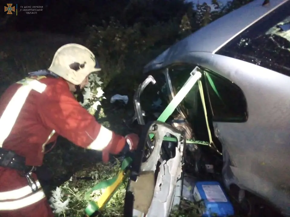 Внаслідок автотрощі водій фольксвагена, 2001 року народження загинув на місці, ще двоє осіб (обидва 2000 року народження) були госпіталізовані до травматологічного відділення Хустської районної лікарні.