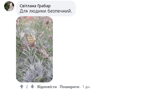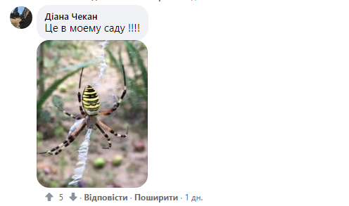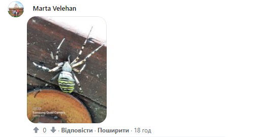 Також мукачівці повідомляють, що отрута павука не є небезпечною для людей, проте все ж варто берегти себе.