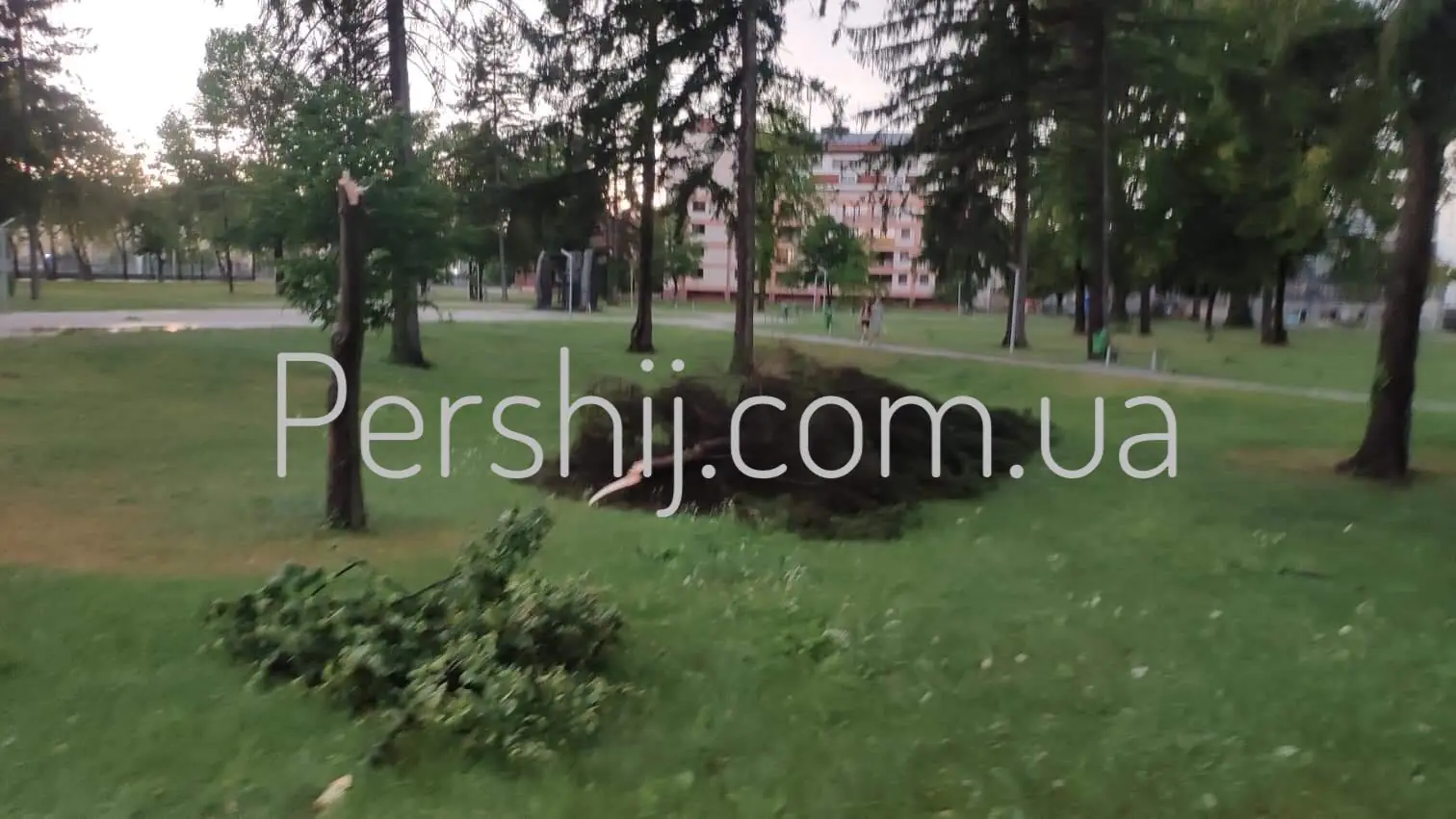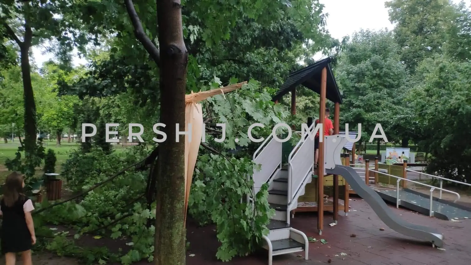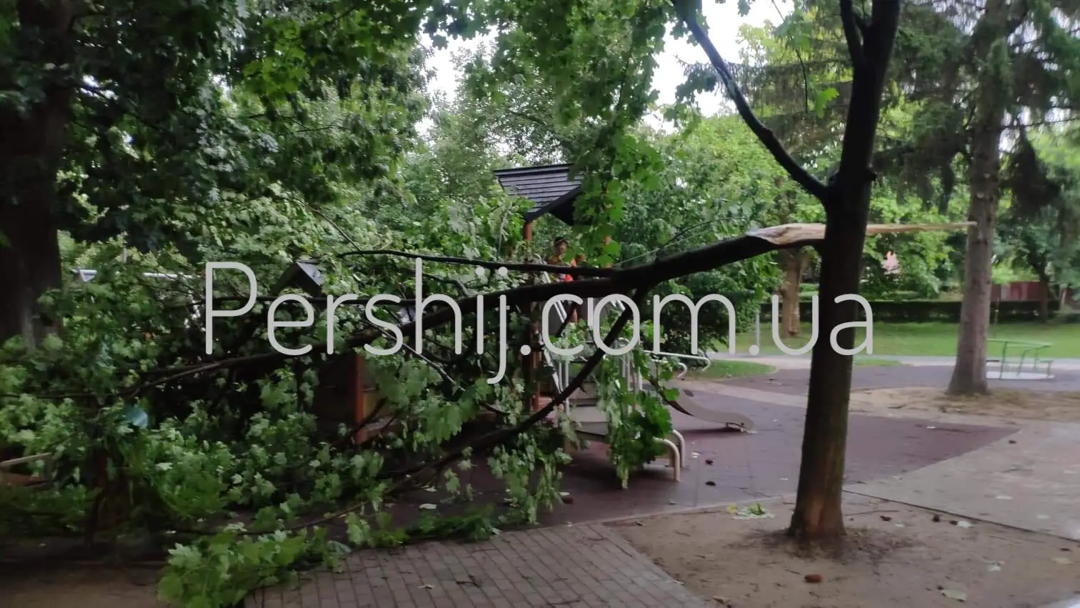 Також, від шквалистого вітру постраждав парк Кузьменка. Там, на дитячий майданчик впала величезна гілка дерева.