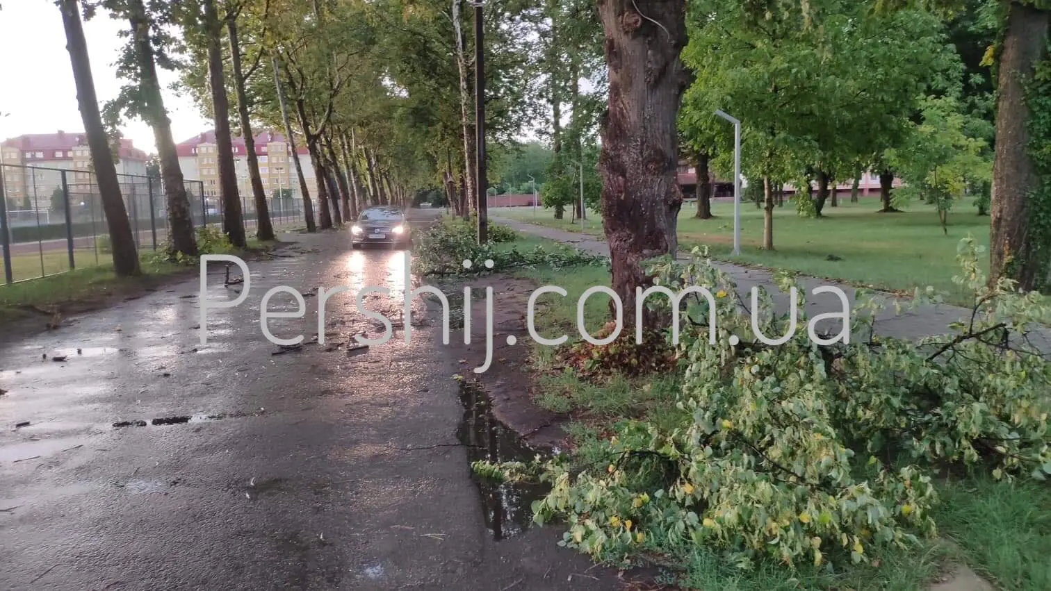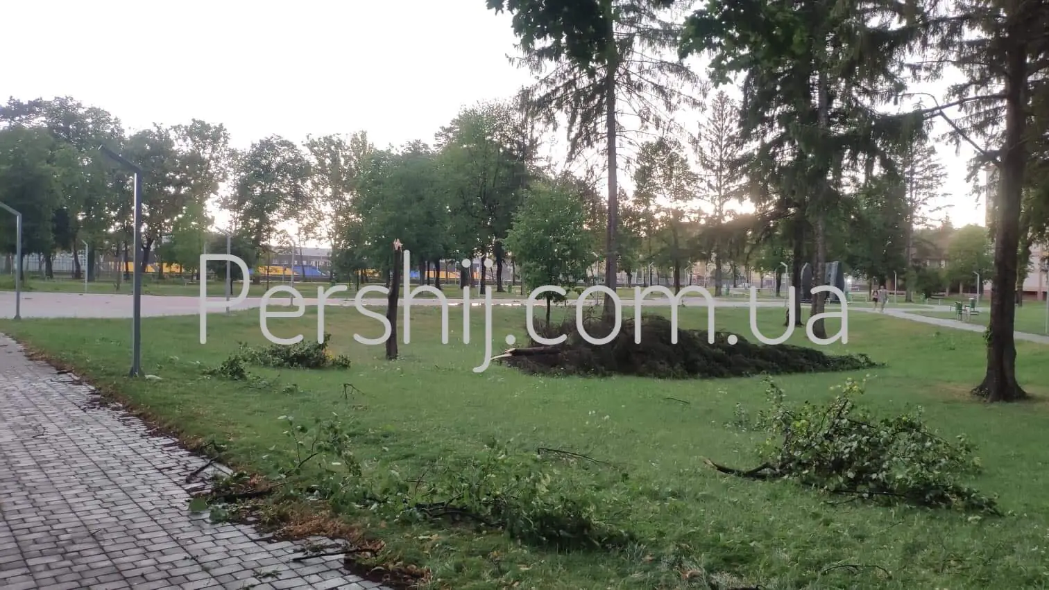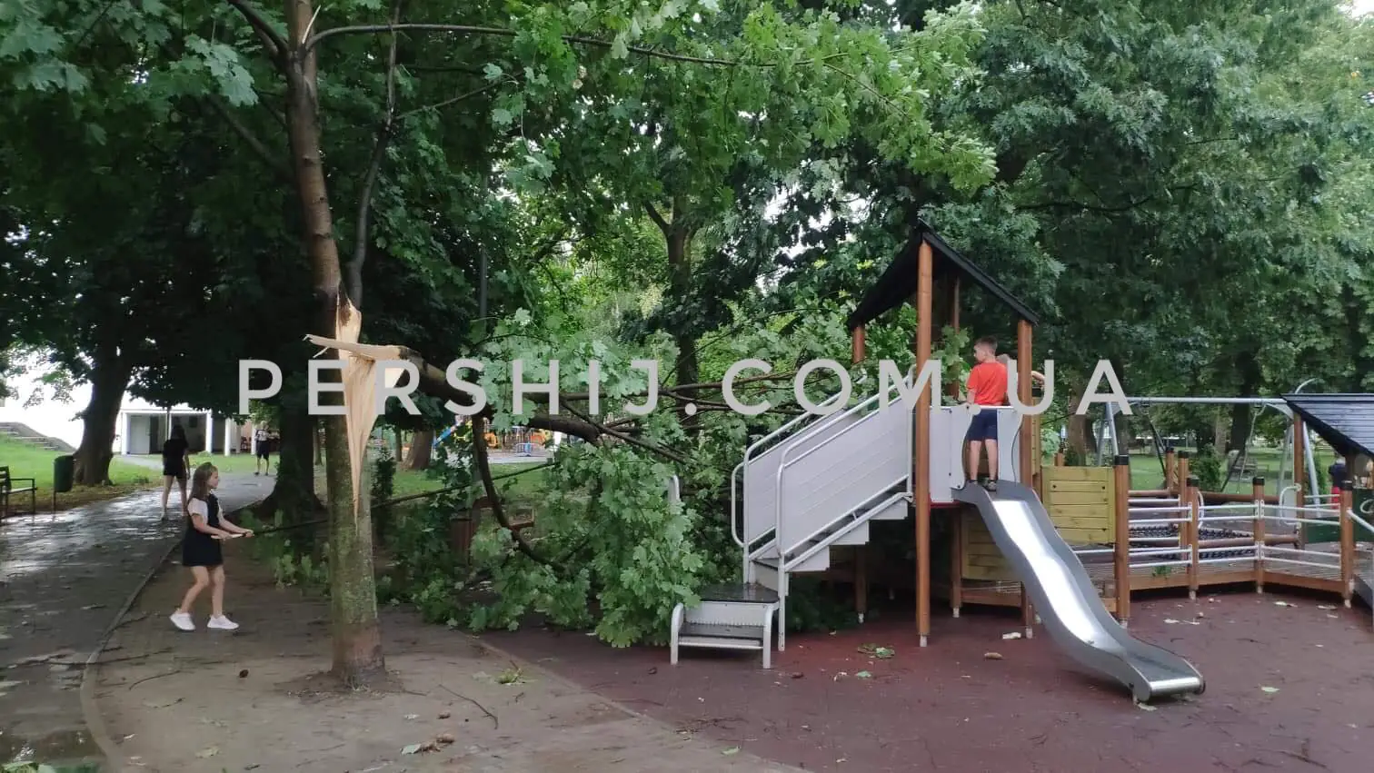 Також, від шквалистого вітру постраждав парк Кузьменка. Там, на дитячий майданчик впала величезна гілка дерева.