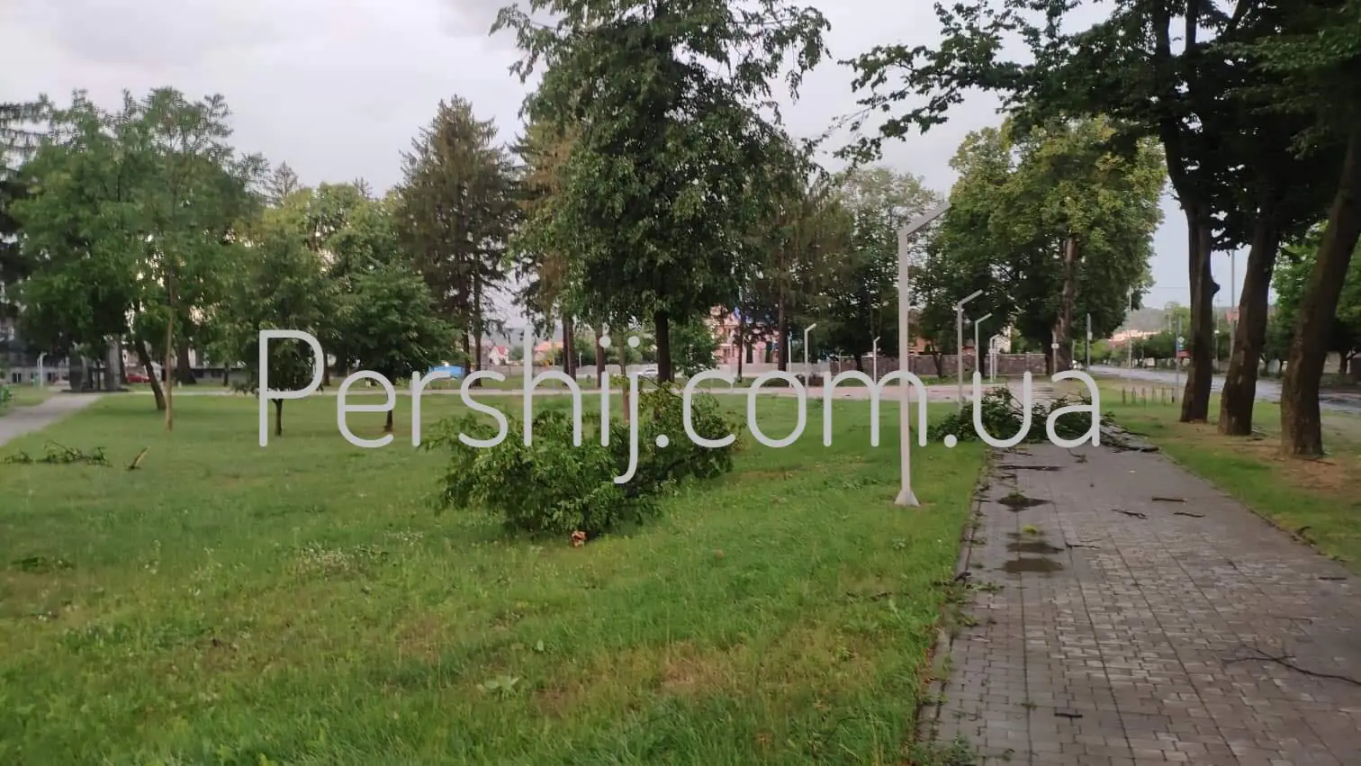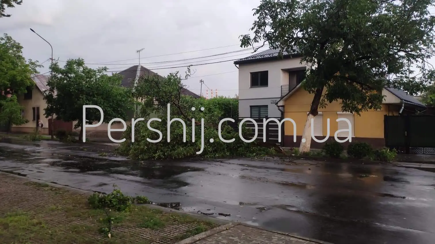 Сьогодні у Мукачеві вирувала негода, злива та сильний вітер ламали великі гілки на деревах.