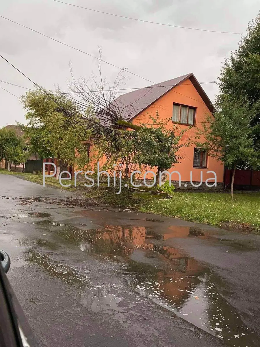 На вулиці Духновича чи мало дерев постраждали від бурі, деякі з них падали прямо на дахи житлових будинків.