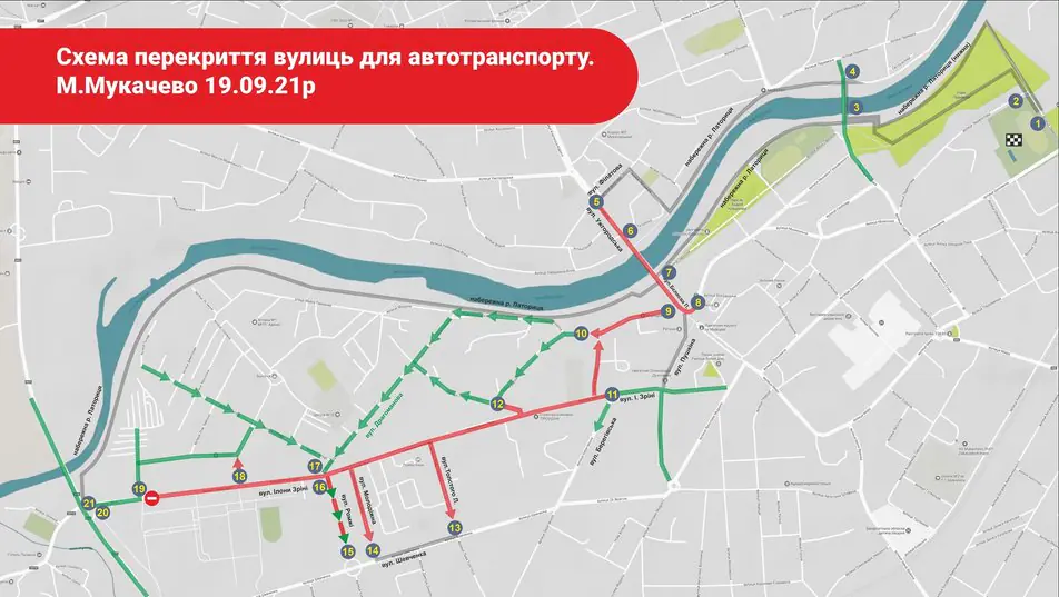 З 9:15 до 12:00 для транспортного засобу будуть перекриті наступні вулиці: Ілони Зріні, Толстого, Ромжі, Молодіжну, Беляєва та Ужгородську.