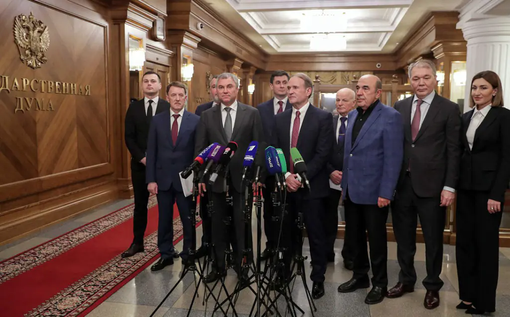 Так, депутати Верховної Ради України від фракції «Опозиційна платформа – За життя» Віктор Медведчук, Вадим Рабінович, Тарас Козак, Олександр Колтунович, Ренат Кузьмін і Тетяна Плачкова провели зустріч зі своїми російськими колегами – депутатами Державної Думи Російської Федерації.