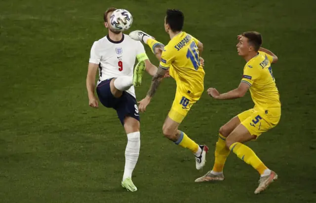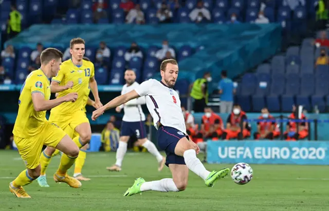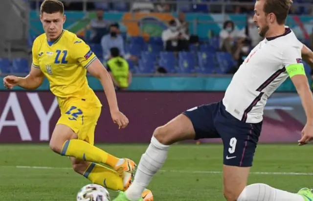 Вже на 4-й хвилині гри Стерлінг віддав пас на Кейна, і капітан Англії зміг пройти через оборону українців та відкрити рахунок 0:1.