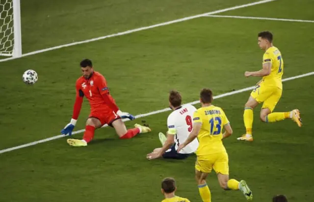 На 51 хвилині Шоу навісив на голову Кейна з флангу, а той відправив м'яч у центр воріт. М'яч пролетів між ніг Бущана. І 0:3 на користь Англії.