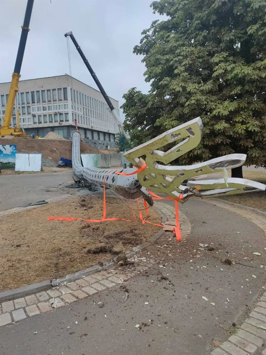 В Херсоні впав 70-метровий флагшток із тризубом, який мали урочисто відкрити 23 серпня (ФОТО, ВІДЕО)