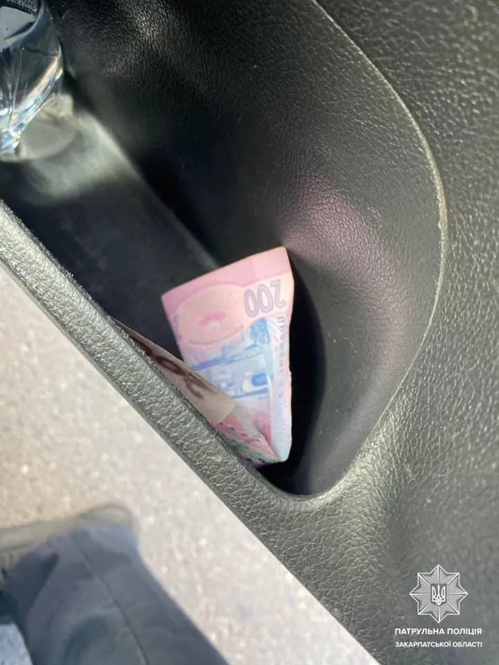 Патрульні повідомили водієві про адміністративну відповідальність. Той у свою чергу намагався «домовитися» про уникнення відповідальності. Почувши відмову, водій поставив готівку до службового авто правоохоронців.