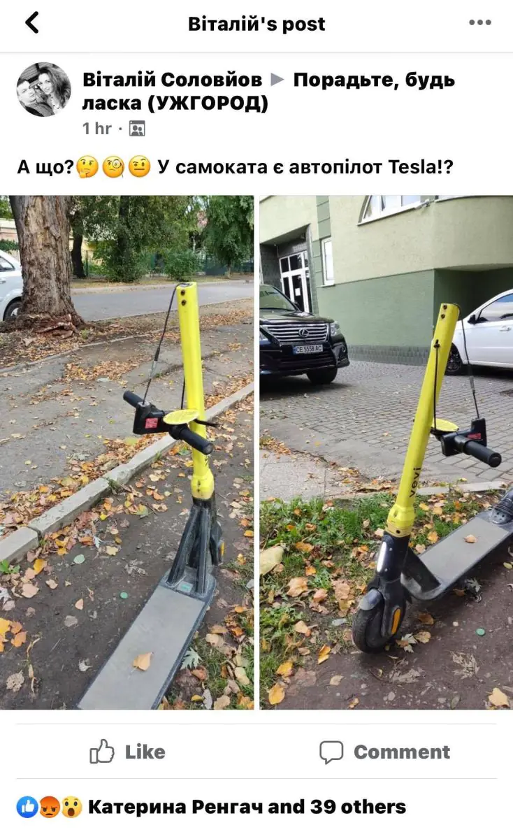 "Нещодавно бачила самокат на Шахті на заборі" - повідомила під дописом Марія Корсак.