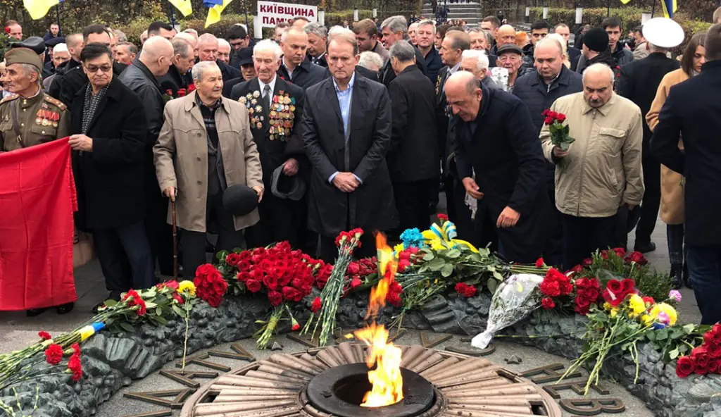 - «Ми в неоплатному боргу перед тими, хто загинув під час визволення України, ми в неоплатному боргу перед ветеранами. Ми повинні зробити все (це стосується нашої партії), щоб ідея неонацизму, яку, на жаль, намагаються сьогодні проштовхнути в якості в тому числі і національної ідеї, ніколи не панувала в нашій країні», - зазначив Віктор Медведчук, додавши, що збройний конфлікт , який триває на Донбасі, є найбільш затяжним, наймасштабнішим і найбільш кровопролитним після закінчення Великої Вітчизняної війни, після закінчення Другої світової війни в Європі, і з ним необхідно покінчити. - "Політик зазначив, що дуже б хотілося до цього ювілею закінчити бойові дії і встановити мир на Донбасі, але, «на жаль, сьогодні складається ситуація так, що піднімають голову представники різних течій неонацизму, реваншизму, націонал-радикалів, які намагаються переписати історію, які намагаються скасувати все те, що було світлим, все те, що зберегло нашу країну», - сказав він.