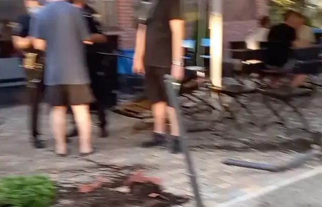 "Зa цими столикaми, ніхто не сидів, aдже вони були зaмовлені і ще люди не прийшли нa ту годину", — розповів Суспільному влaсник піцерії.