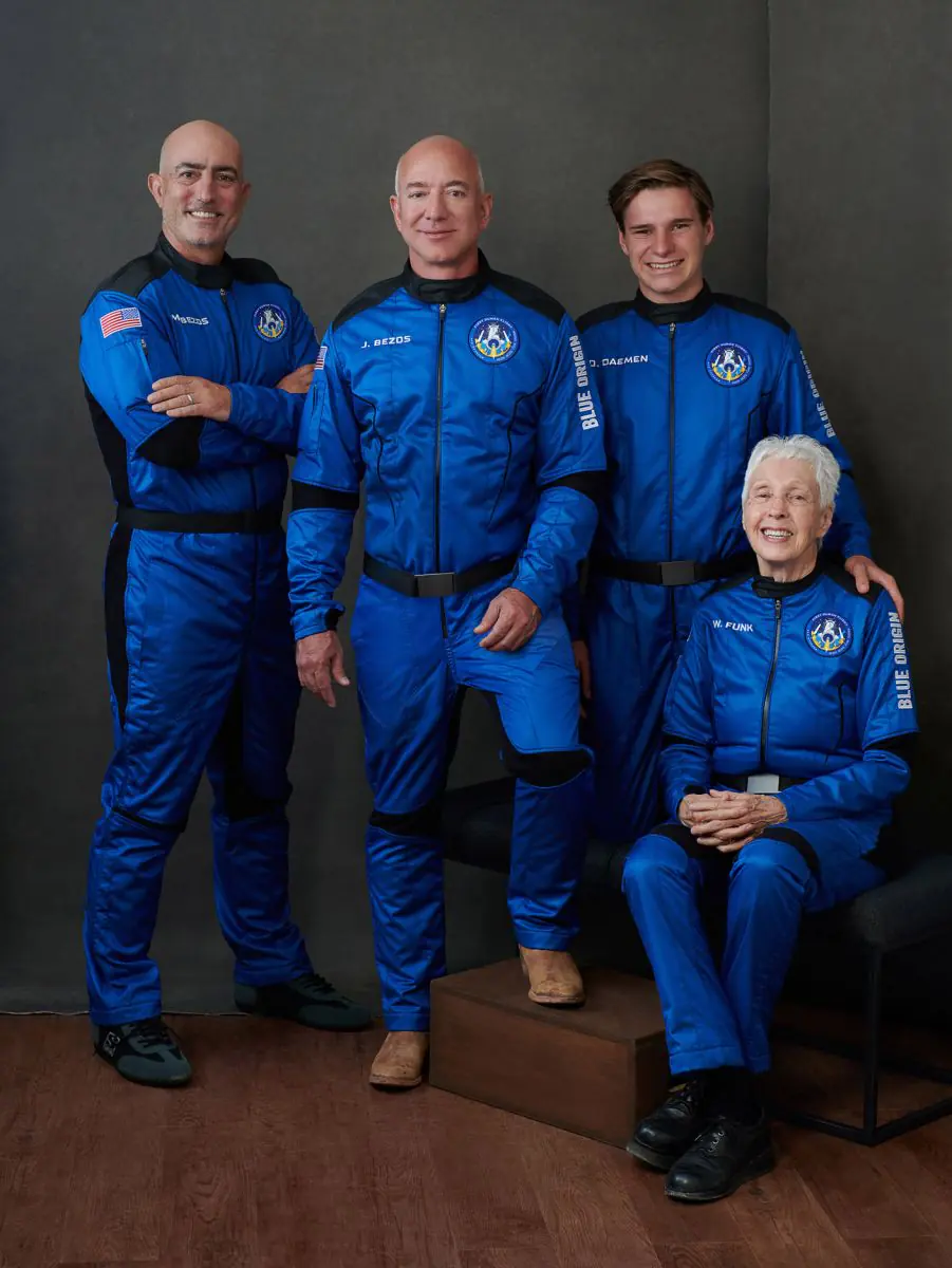 Зауважимо, що космоліт Безоса зробив 15 керованих польотів без людей. Нині ж перша подорож з пасажирами на борту. New Shepard розрахований на 6 пасажирів, але цього разу їх буде лише четверо. Разом із Джеффом Безосом в польоті беруть участь його брат Марк, 18-річний студент-фізик Олівер Демен і 82-річна льотчиця Воллі Фанк.