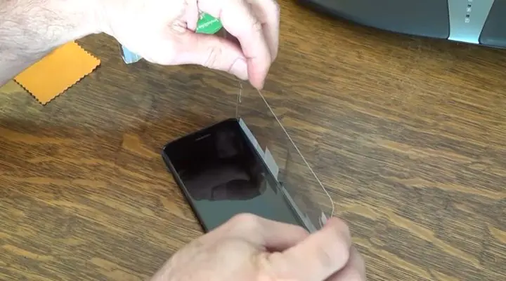 Для цього його слід чимось підважити. Згодиться будь-який підручний засіб – від нігтя до пластикової картки, медіатора для гітари чи не дуже гострого ножа. Існують також спеціальні пластикові лопатки, призначені для цієї цілі, але насправді в домашніх умовах вони не так уже й потрібні. Тут головне діяти обережно, щоб не подряпати сам екран пристрою. У процесі старе скло ще сильніше розтріскається – це нормально, туди йому і дорога. Зазвичай, коли підважити захисне скло з одного краю, воно без проблем повністю відстає від екрану. Якщо скло вкрите густою павутиною тріщин, спочатку підважуйте найменш пошкоджені ділянки, а потім поетапно знімайте дрібніші уламки.